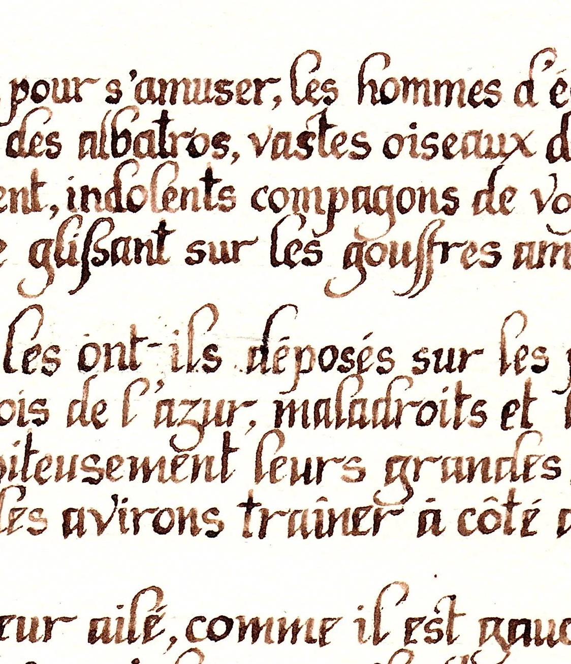 Dans le cadre d'ateliers, chez vous ou en structures associatives, je vous propose de vous initier ou vous perfectionner à la calligraphie avec une plume d'oie.
